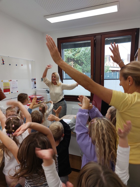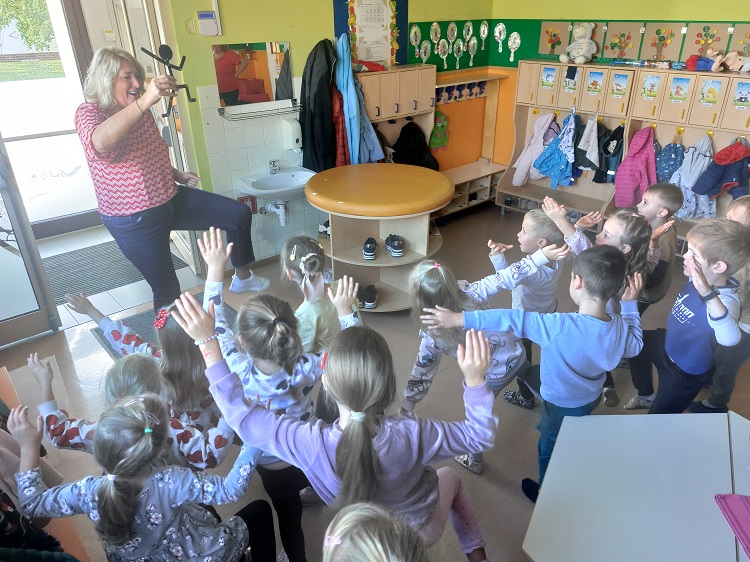 Prav tako smo h gibanju spodbudili ostale zaposlene v našem vrtcu in se skupaj z njimi razgibali.