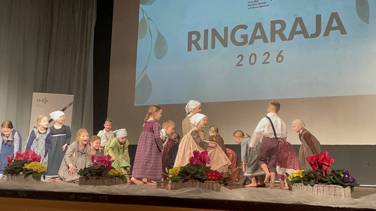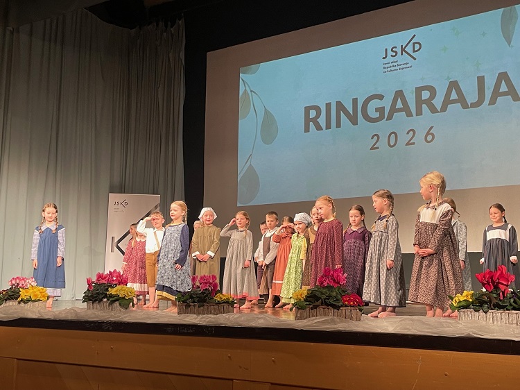 V torek, 24. 3. 2026, smo se z nastopom naše folklorne skupine Pastirčki odzvali povabilu Javnega sklada Republike Slovenije za kulturne dejavnosti in soustvarili prireditev Ringaraja. Kot tretji po vrsti so na oder prikorakali prav naši »Pastirčki«, bose nožice najmlajših udeležencev so odločno in pogumno zaplesale na odru, za skrbno urejeno dekoracijo pomladnih cvetlic: rumenih, rdečih in vijoličnih trobentic.