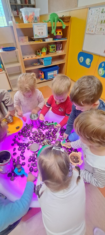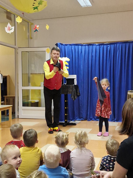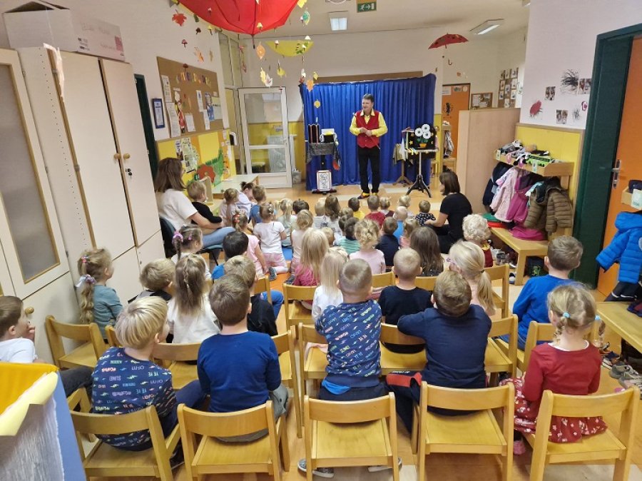 Prebirali smo pravljice o prijaznosti v gozdu, kjer so živali s svojimi dejanji pokazale, kako majhna dobra dela lahko razveselijo druge. Obiskal nas je čarovnik Andrej, ki nas je navdušil s svojimi čarovniškimi triki in nas popeljal v svet domišljije. V ustvarjalnih delavnicah smo se igrali z jesenskimi plodovi.