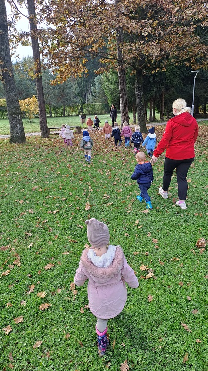 V mesecu oktobru smo obeležili Svetovni dan hoje. V okviru le tega, smo v vrtcu izpeljali različne aktivnosti, s katerimi smo še dodatno spodbudili telesne dejavnosti za krepitev zdravja. Skupaj z otroki smo se odpravili na aktivne sprehode, daljše pohode, izvajali gibalne aktivnosti v gozdu, na travniku, ...