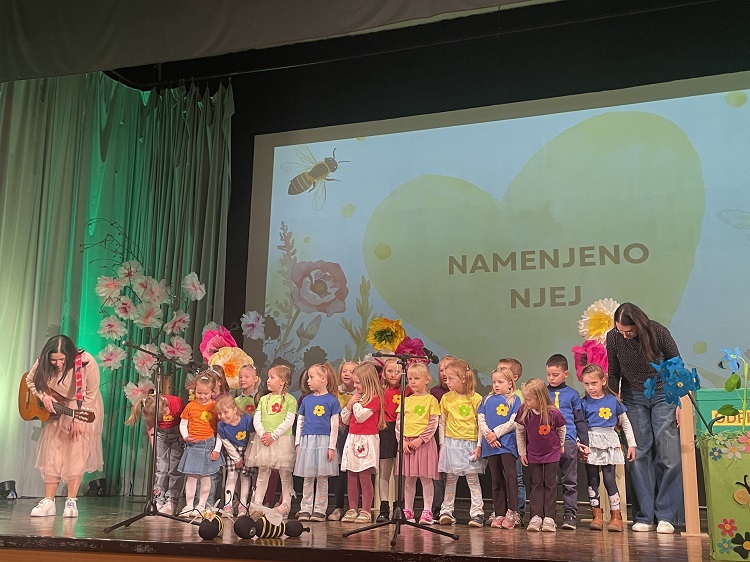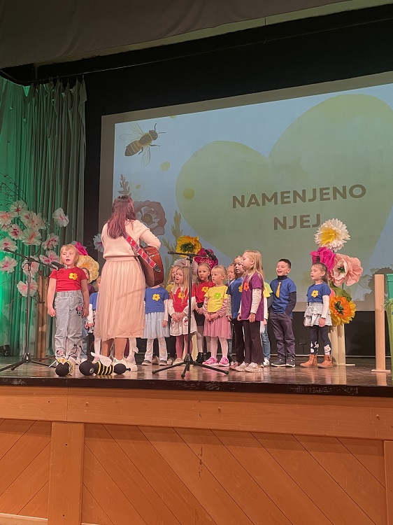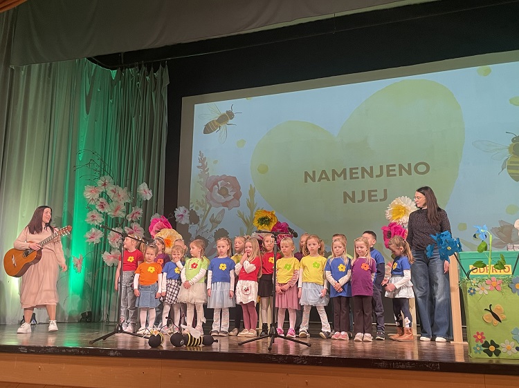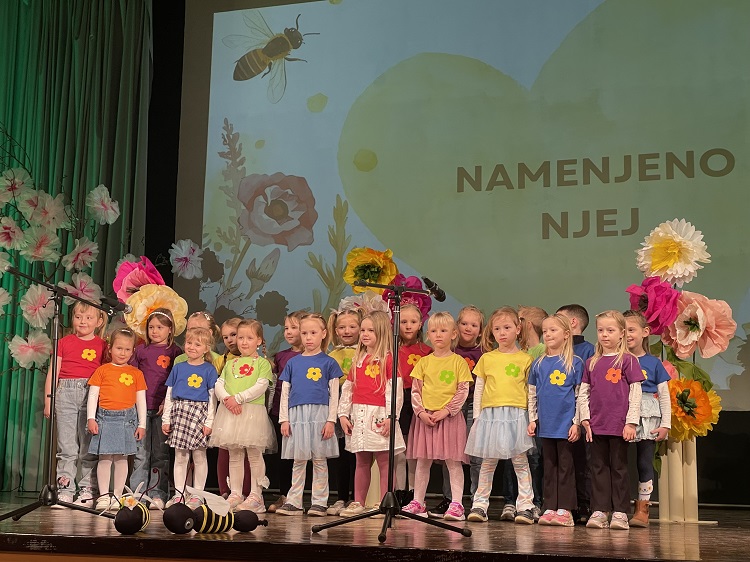 V torek, 17. marca se je naš vrtec predstavil na prireditvi Namenjeno njej, in sicer z nastopom pevskega zbora Iskrice pod vodstvom Katarine Hren Lajhar in Polonce Flis Pekovšek. Za dodatek scenskega dela pevskega nastopa je s svojo ustvarjalnostjo poskrbela Mateja Gošnik. S ponosom, kančkom pozitivne treme in velikim zaupanjem v strokovne delavke in otroke smo čakali začetek prireditve, ki jo je otvoril prav naš pevski zbor. Najmlajši, a zato nič manj pogumni so nastop suvereno opravili in še enkrat zablesteli na odru. Hvala občini za vabilo, staršem za udeležbo in sodelovanje, strokovnim delavkam za vložen trud in predanost ter seveda našim otrokom za polepšan torkov popoldan.