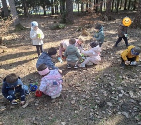 Kotiček dom smo si iz igralnice prestavili v gozd. Otroci so z različnimi plastičnimi posodicami, žl...
