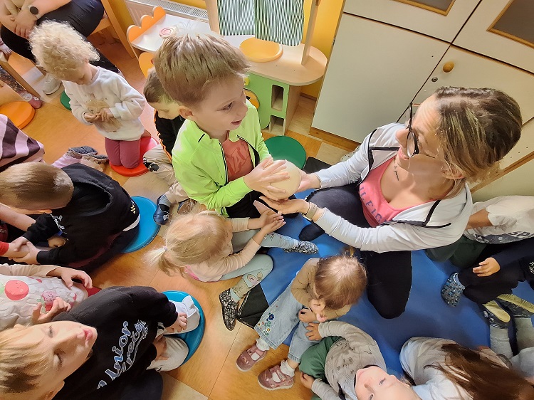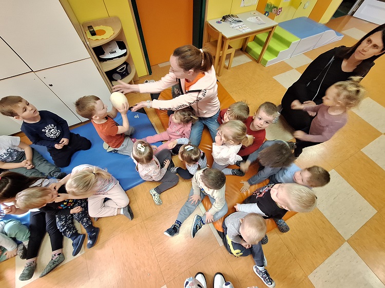 Dan smo si popestrili s poznavanjem jajc. Ogledali smo si namreč kokošje, račje in nojevo jajce.