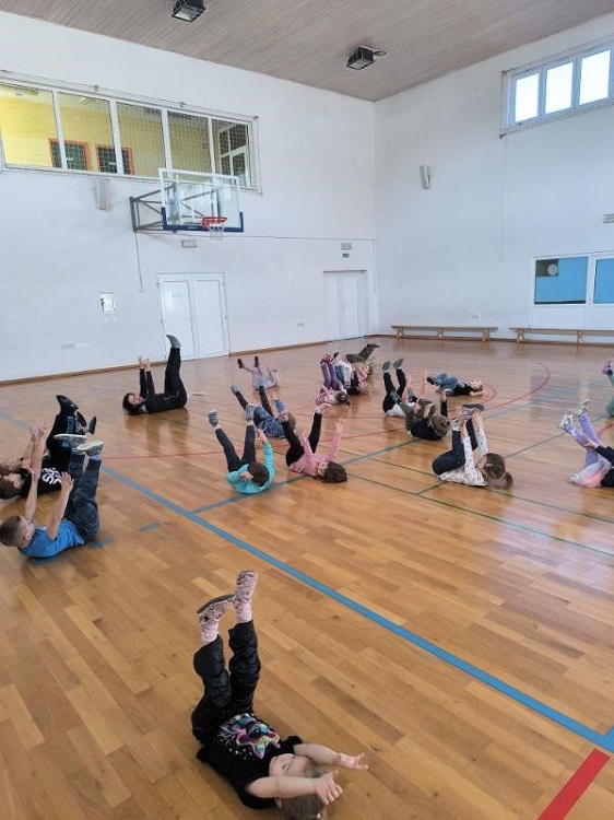 Z njo so telovadili Tjašini in Petrini otroci iz enote Stranice.