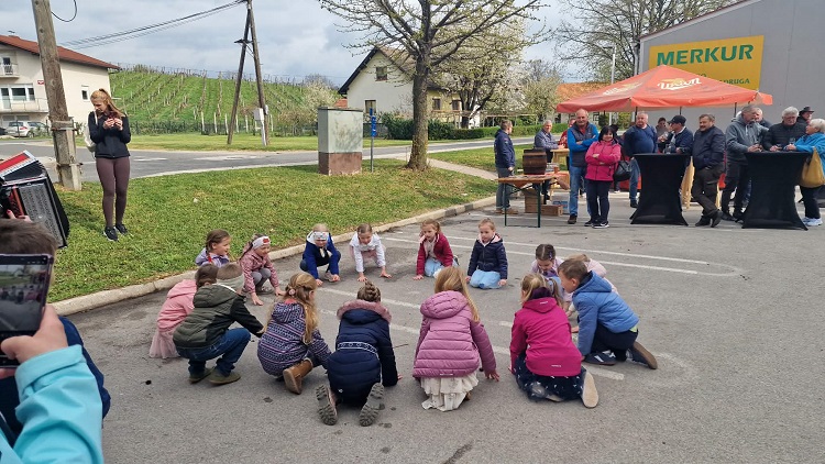 Mladi plesalci so s svojim nastopom popestrili dogajanje pred Blagovnico Kmetijsko-gozdarske zadruge Slovenske Konjice. Z otroškim ljudskim plesom in razigranostjo so poskrbeli za pravo pomladno vzdušje ter razveselili številne obiskovalce in razstavljavce.