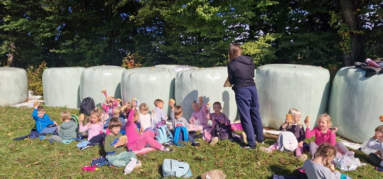 Jesen nas kliče po potepanju v naravi in raziskovanju gozda. Tako smo se tudi mi odpravili na jesenski pohod. Prehodili smo del Srčkove učne poti, ki je v okolici vrtca. Pot nas je iz vrtca vodila skozi naš park v Zrečah, mimo zreškega jezera in čez potok v gozd. Da smo bili na pravi poti, so nas opozarjale rumene puščice z napisom Srčkova učna pot. Po gozdni poti smo srečali močerada, pobirali kostanj, listje, videli gobe. Hodili smo po blatu, koreninah, skakali čez potoček. Gozdni škrat je pripravil presenečenje. Na cilju smo se okrepčali z malico in vodo iz nahrbtnikov. Ko smo bili siti, smo se na gozdni jasi igrali, raziskovali, nato pa smeti pospravili v nahrbtnike in se odpravili polni novih vtisov nazaj v vrtec.