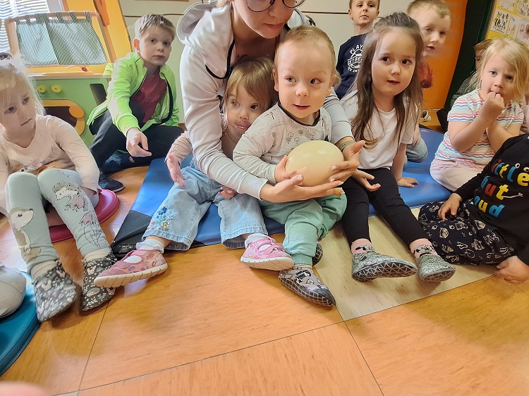 Dan smo si popestrili s poznavanjem jajc. Ogledali smo si namreč kokošje, račje in nojevo jajce.